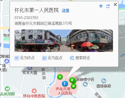 怀化站400米向东南步行 到 怀化大厦5站乘 1路 (市二医院方向) 或 101路 40路 9路 到 三中1.1公里向东南步行 到 怀化市第一人民医院