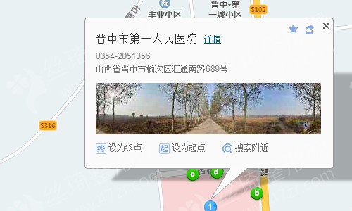 晋中站250米向南步行 到 晋中高铁站5站乘 1路(经纬二生活区) (火车站方向) 到 区医院360米向东步行 到 区医院(招呼站)4站乘 801路 (公交太谷分公司方向) 到 晋中一院新址东门100米向西南步行 到 晋中第一人民医院,