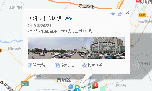 辽阳站670米向南步行 到 站前3站乘 036路 (小屯方向) 到 市中心医院130米向东步行 到 辽阳市中心医院,