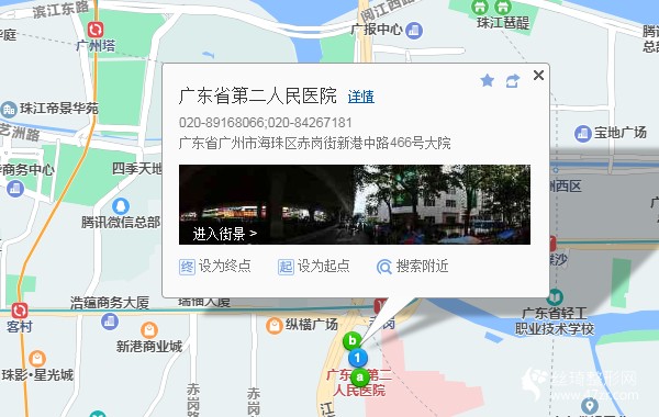 广东省汽车客运站220米向东步行 到 广州火车站 F口 进站7站乘 地铁5号线 (文冲方向) 到 珠江新城2站乘 地铁3号线 (番禺广场方向) 到 客村 C口 出站280米向东步行 到 珠影(地铁客村站)2站乘 252路 (外环西路(北亭广场)总站方向) 或 14路 270路 468路 206路 37路 264路A线 到 赤岗180米向东北步行 到 广东省第二人民医院