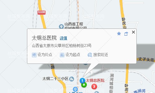 太原站810米向北步行 到 建设北路五龙口街口10站乘 826路 (司徒洼方向) 或 73路 到 太钢东门1.3公里向东南步行 到 太钢总医院