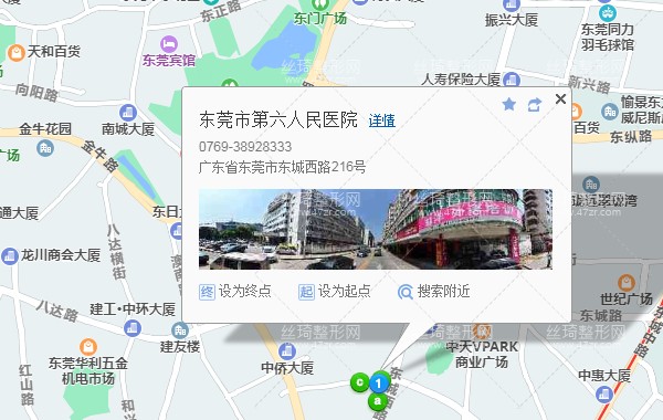 东莞市第六人民医院始建于1954年,位于东莞市莞城东城西路216号,毗邻市中心广场和黄旗山城市公园,是东莞市卫生健康局直属按照三级医院管理的公共卫生专病防治机构,社保定点医院。挂东莞市慢性病防治院、市结核病防治所、市职业病防治中心、市皮肤性病防治所和市医学美容中心牌子,为东莞市职业健康检查质量控制中心、市皮肤性病医疗质量控制中心和市医疗美容医疗质量控制中心挂靠单位,是全市结核病、职业病和皮肤性病的预防、治疗和管理中心。