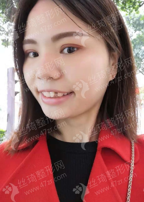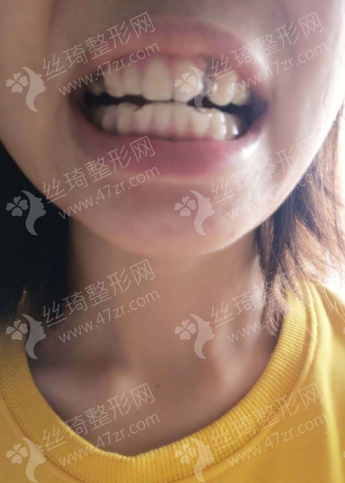 手术后:现在我的牙齿较为的整齐了,淘气的小虎牙也回归到正常的位置,而我现在跟别人笑起来也觉得自己特别的自信,经常有人说,你的牙齿看起来很不错啊!天生的吧!我跟他们说我是矫正过的,他们还较为的惊讶,我真的是太开心了,感觉自己真的是美美哒。而且也让我从前的自卑改成了现在的特别有自信,做什么事情都会说,我可以。