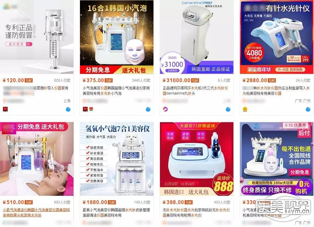 然而,在医美消费市场火爆的同时,各种医美产品的假货、水货问题也是令人堪忧。随便在医美电商平台上搜索“水光针”就会发现,各种品牌的水光针仪器琳琅满目,价格从100多元到数万元不等,其中不少水光针仪器并未通过我国CFDA批准,对于这些店铺的医疗器械经销资质也无法确认。