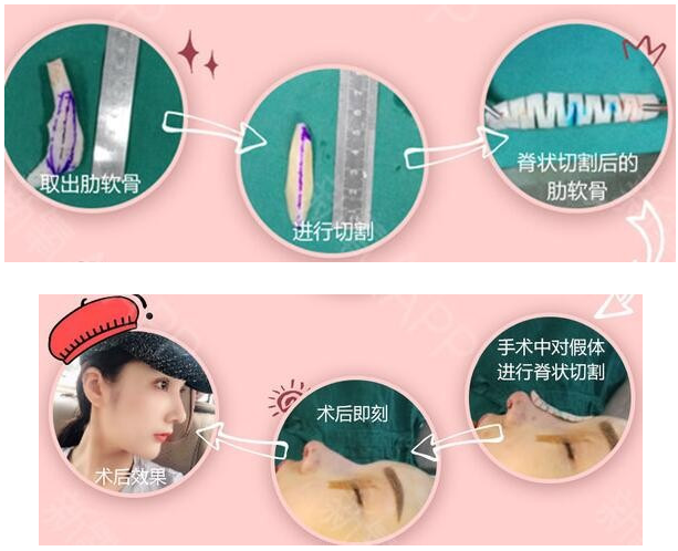 肋软骨骨量充沛:可以用于同时用于鼻背抬高、鼻尖、鼻小柱延长,特别对于二次或多次鼻修复的顾客来说,肋软骨隆鼻是正确的选择。