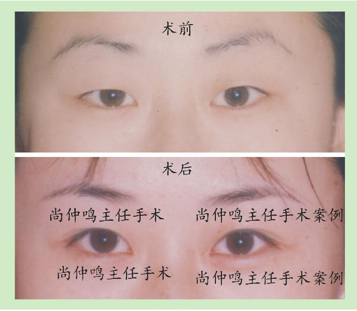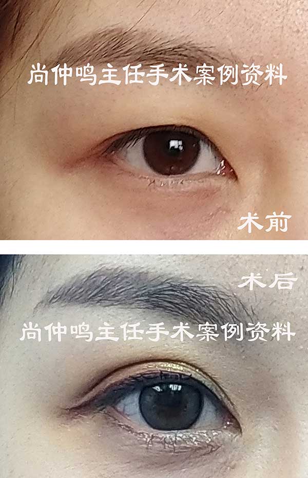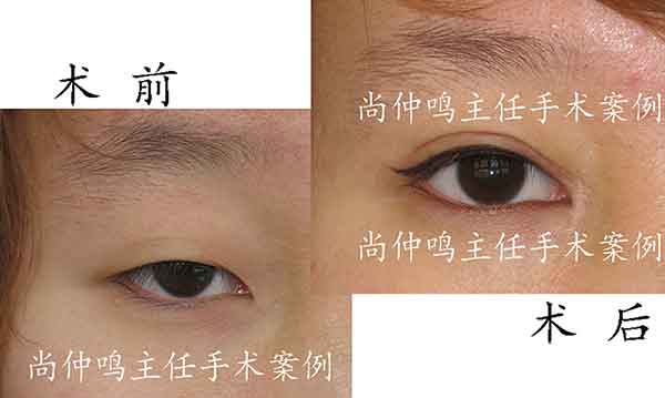 尚仲鸣主任强调容貌美学必须以年轻化和真实感为原则。上图是尚仲鸣主任为求美者做的眼部整形前后的对照。术后必须呈现逼真自然、楚楚动人、宛如天生的效果。尚仲鸣主任研究推出的《尚氏眼部整体整形美容体系技术》使中国的眼部整形技术走在世界的前列。经尚氏法做眼部整形后,颜值提升、自信心增强、生活质量提高、人生的命运也随之改变。尚氏美容技术使求美者终生受益。